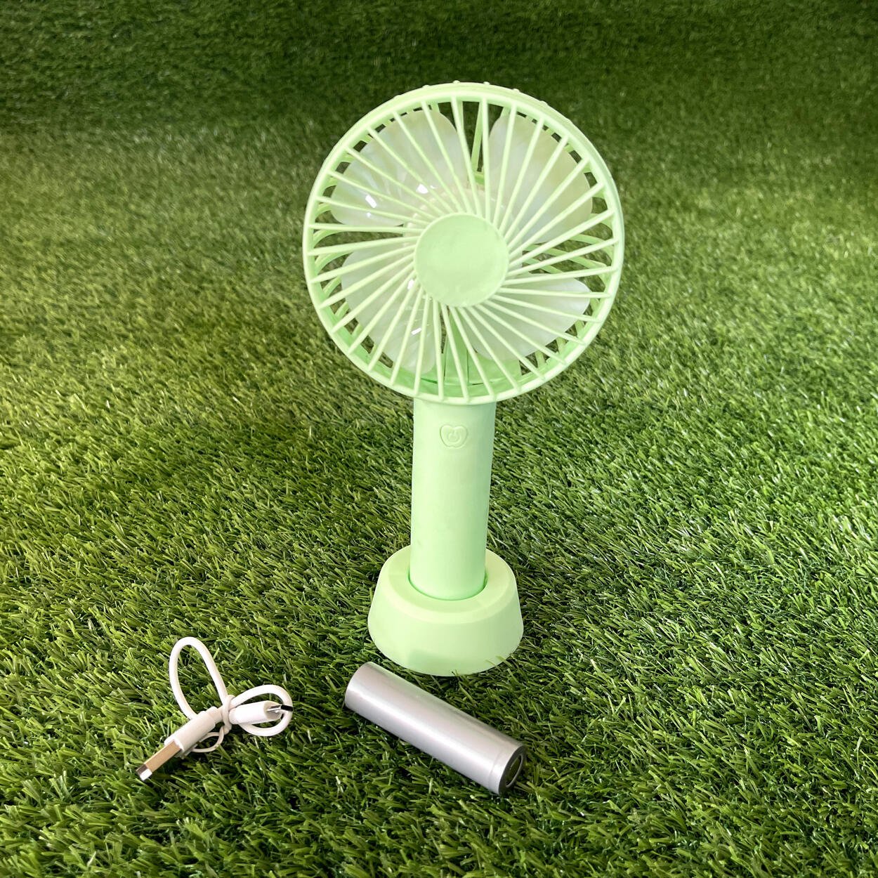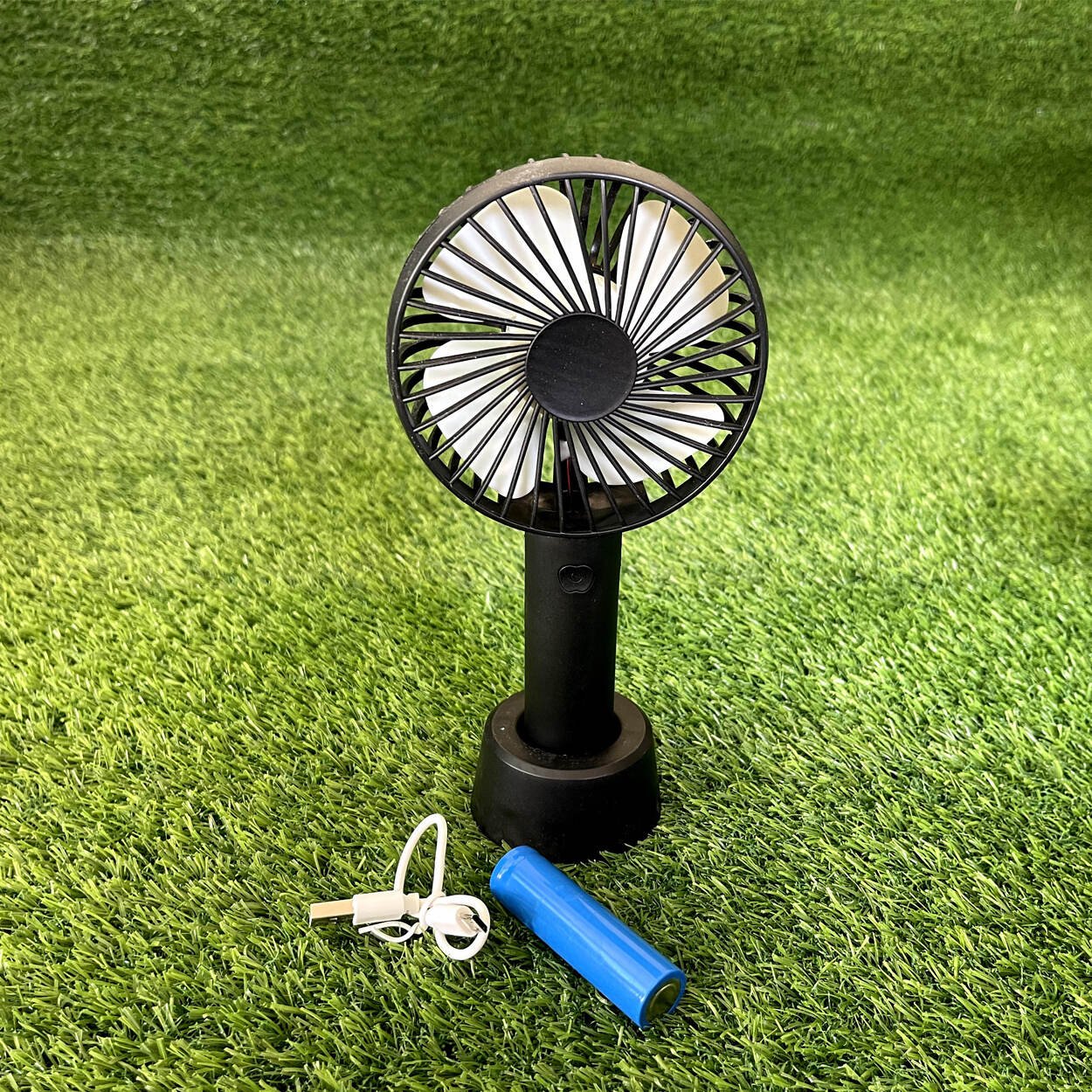Designed for convenience, its rechargeable battery and lightweight build make it an ideal choice for outdoor activities and portable use. The stable base included with the fan ensures hands-free operation, allowing you to work or relax without having to hold the fan constantly.